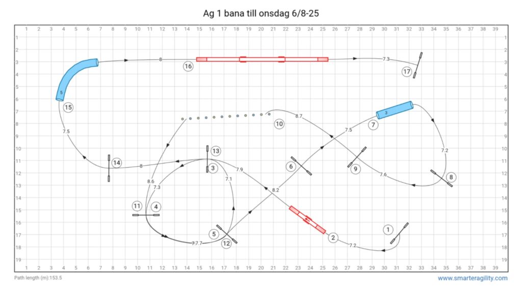 Banor onsdag 16/7-25. Det kommer finnas en blåbärsbana samt en agility klass 2 bana.