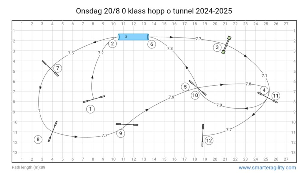 Här kommer banor till onsdag 27/8. Den på bilden står på stora plan och på den mindre står en bana i en 8:a (ingen banskiss) som är bra för träning av olika byten.